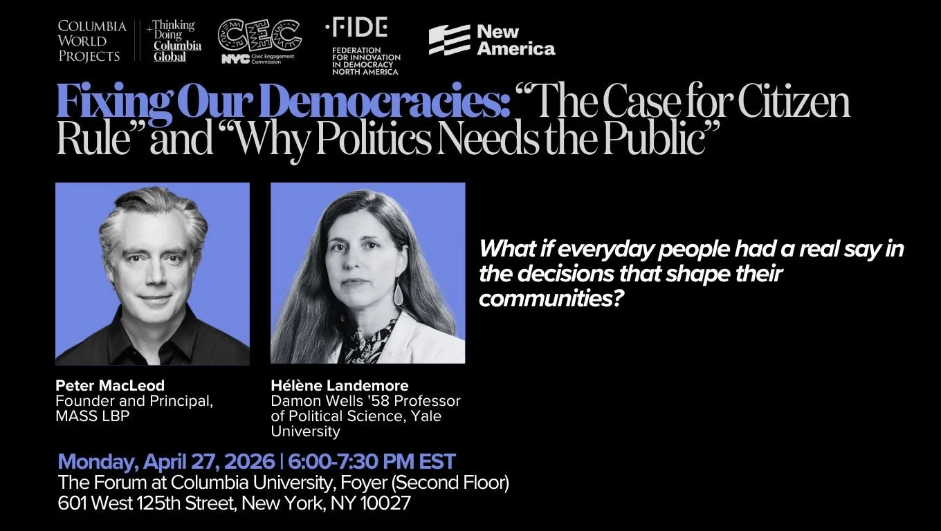For governments, this kind of representative, informed public judgment can become a valuable resource. Rather than fearing public engagement, institutions begin to see citizens as partners capable of contributing to thoughtful policy development. As Peter McLeod discusses in his book Democracy's Second Act, instead of being a risk to avert, the public becomes a trusted resource to utilize.
